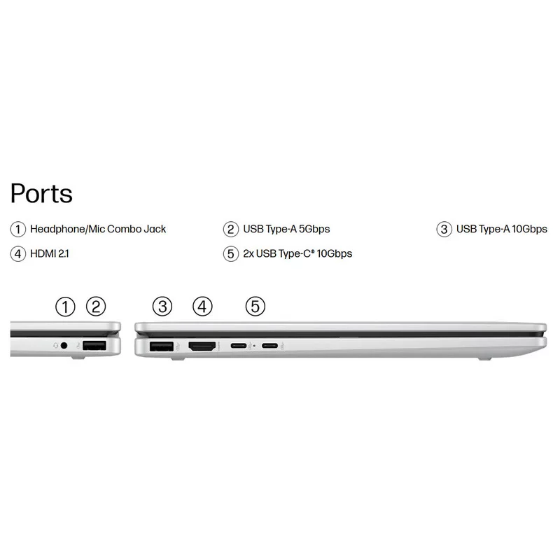 دو عدد USB-C (با سرعت 10 گیگابیت بر ثانیه، پشتیبانی از شارژ Power Delivery 3.1، پشتیبانی از HP Sleep and Charge و خروجی تصویر DisplayPort 1.4a) و دو عدد USB-A (یک عدد با سرعت 5 گیگابیت بر ثانیه و یک عدد با سرعت 10 گیگابیت بر ثانیه)