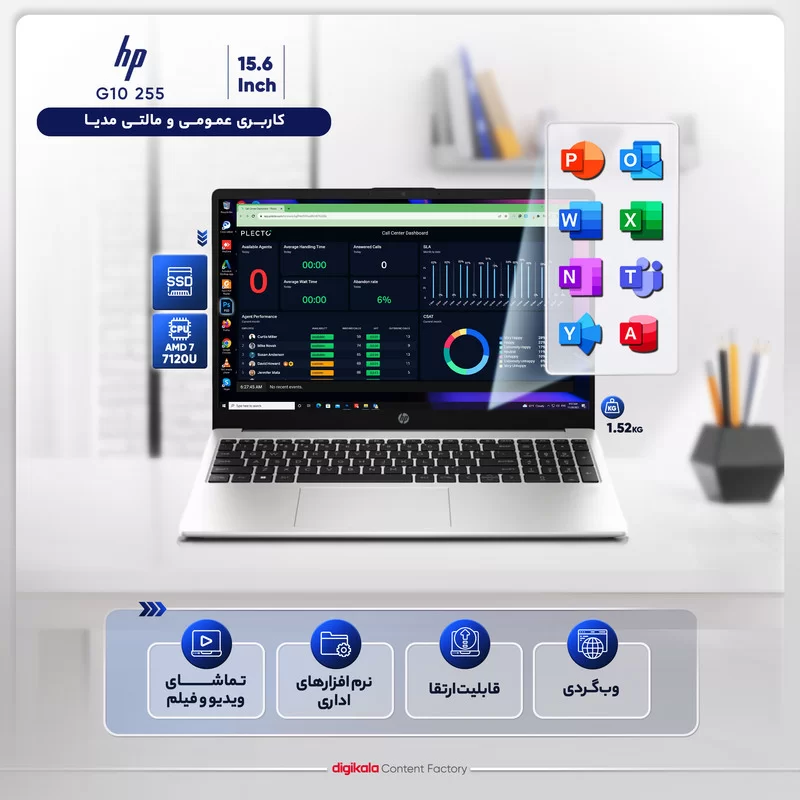 لپ تاپ 15.6 اینچی اچ‌ پی مدل G10 255-Athlon Silver 7120U-8GB DDR4-256GB SSD-TN - کاستوم شده